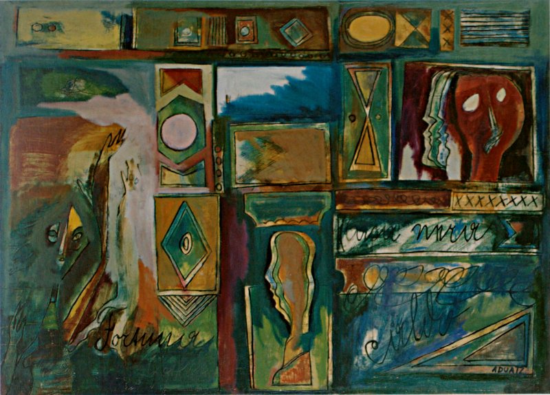 Der Maler Aduatz wurde 1907 in Pola als Sohn eines österreichischen Beamten geboren. Er ist einer der letzten unter uns wandelnden Zeugen der alten Monarchie, die einmal unser großes Vaterland war. Das Ende des ersten Weltkrieges brachte ihn in die Steiermark, wo sein Vater eine neue Existenz fand. Der junge Aduatz wollte Lehrer werden. Er besuchte die Lehrerbildungsanstalt in Graz und die Kunstschule am Ortweinplatz, wo Wilhelm Gösser und Ernst Jungel seine Lehrer waren. Dann bildete er sich weiter an der Kunstakademie in Wien. Im Umgang mit bedeutenden Persönlichkeiten jener Zeit schärfte er sein Kunsturteil und lernte, die Malerei als geistigen Anspruch zu begreifen. 1934 wurde er als Hauptschullehrer nach Voitsberg versetzt, wo er sich ein Haus baute, das bis heute seine Künstler-Werkstatt blieb. 1937 wurde er Mitglied der Sezession Graz